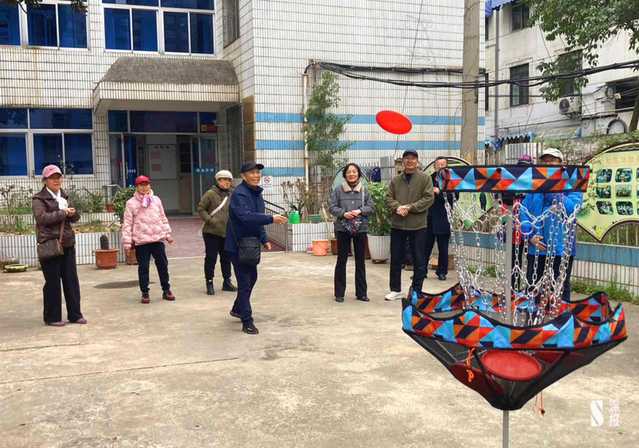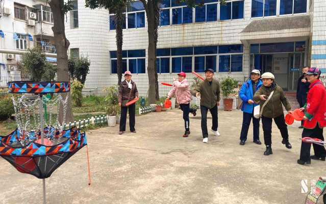 会议结束后,与会人员饶有兴致地演练了徐州市老年体协今年推广的运动项目九宫飞盘。