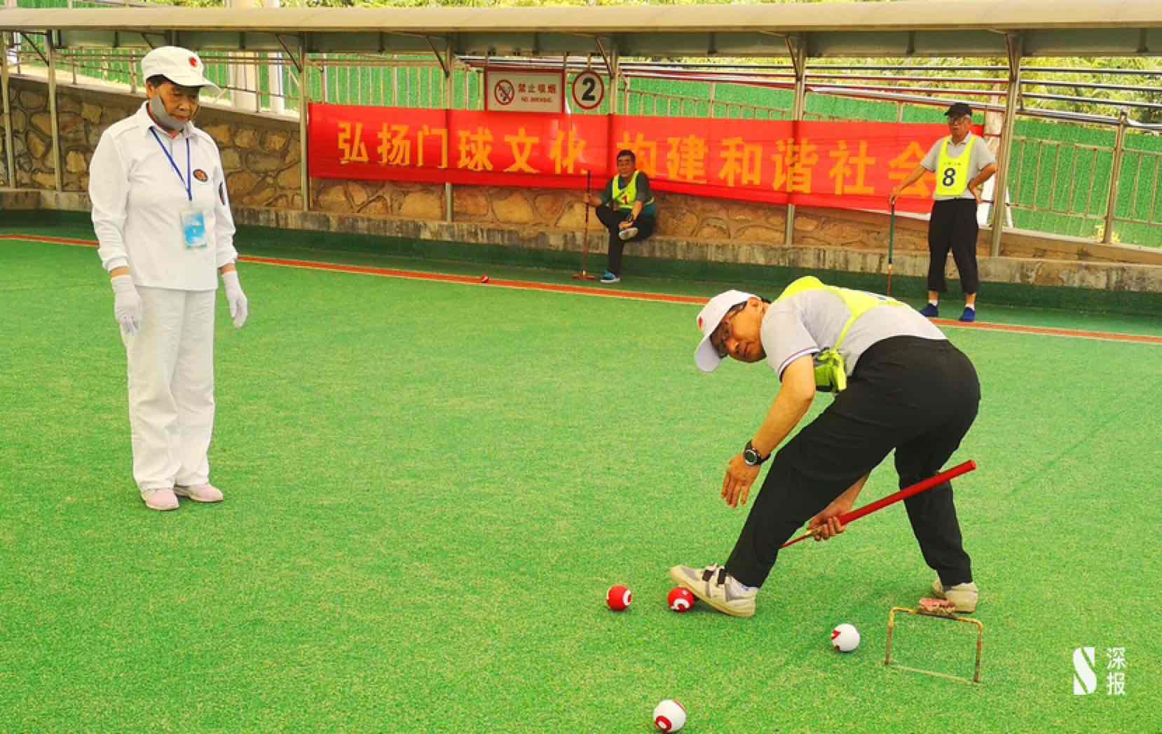 14日一大早,所有参赛队员即到门球场开始适应性训练。清脆有力的击球声、握手致意的问候声、欢唱悦耳的鸟鸣声交织在一起,伴随着茂密山林下的清晨美景,演奏出一曲人与自然和谐、静与运动互融、乐与健康相伴的优美旋律,成为本次门球交流赛“重在友谊,重在交流,重在健康、重在快乐”的主基调。
