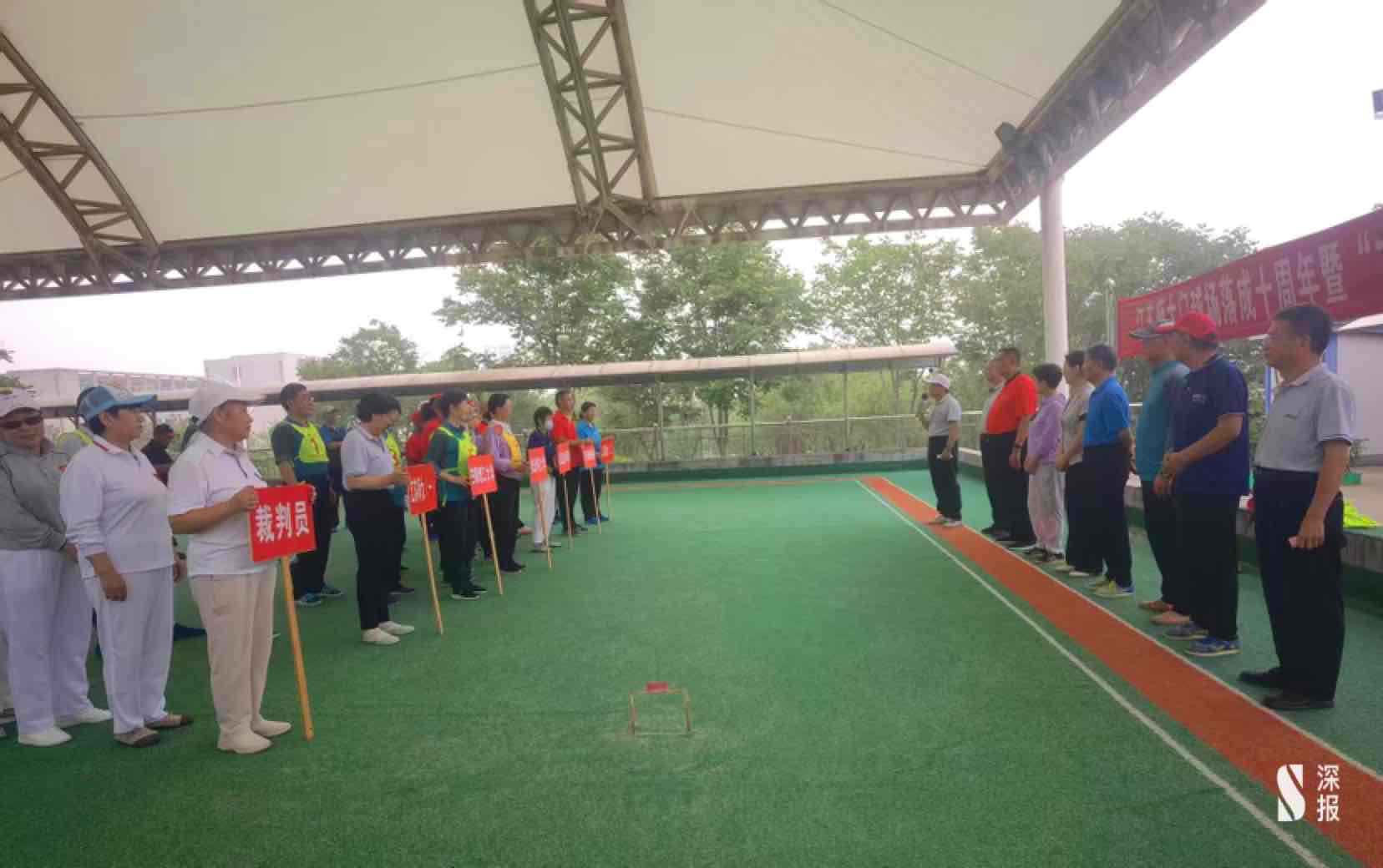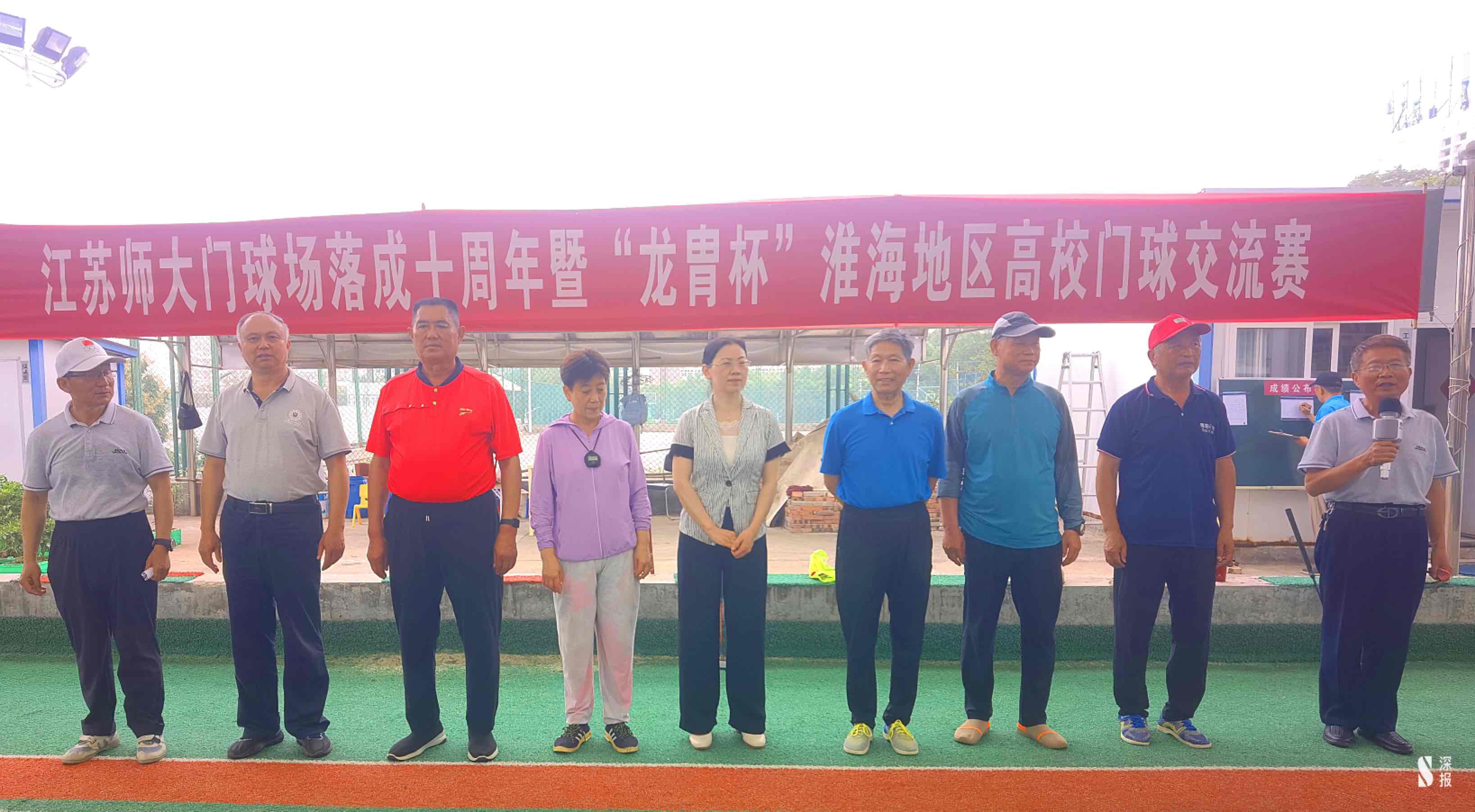 2025年6月14日,位于汉文化发祥地古彭徐州的江苏师范大学两片人造草坪的门球场内,人声鼎沸,欢声笑语,来自苏鲁豫皖淮海周边地区的高校门球代表队的球友们欢聚在这里,兴致勃勃地参加由江苏师范大学老年体协主办、龙胄门球体育发展有限公司协办与支持的江苏师大门球场落成十周年暨“龙胄杯”淮海地区高校门球交流赛。