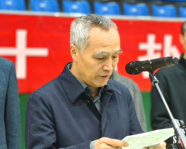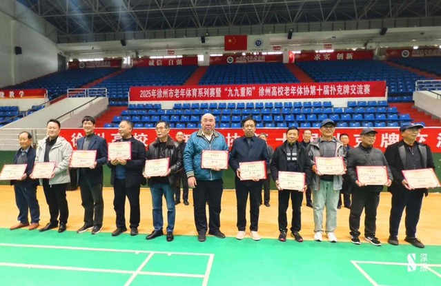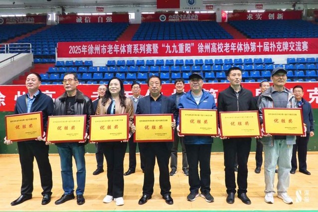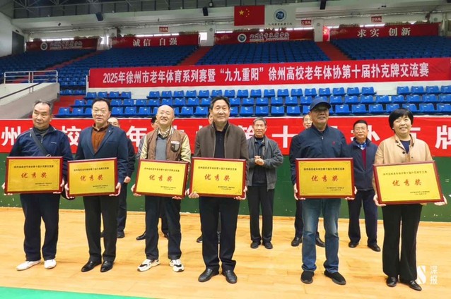 九州职业技术学院党委书记、徐州高校老年体协名誉会长吴永平宣布:2025年徐州市老年体育系列赛暨“九九重阳”徐州高校老年体协第十届扑克牌交流赛开赛!”