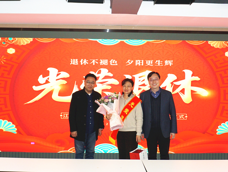 随后,与会领导为鞠敏老师郑重佩戴荣休绶带,并献上鲜花,这份沉甸甸的敬意与祝福,承载着全体同事对她的感念与不舍。