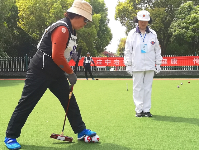 下午一点,师大遭遇本届冠军新沂市队。新沂门球底蕴深厚,实力出众。双方你来我往,战至最后一杆。持白球的师大队以7:8落后,此时若二门前的6号球顺利进二门即可追平。然而对方5号球一记远射,将6号击出界外,师大遗憾告负。